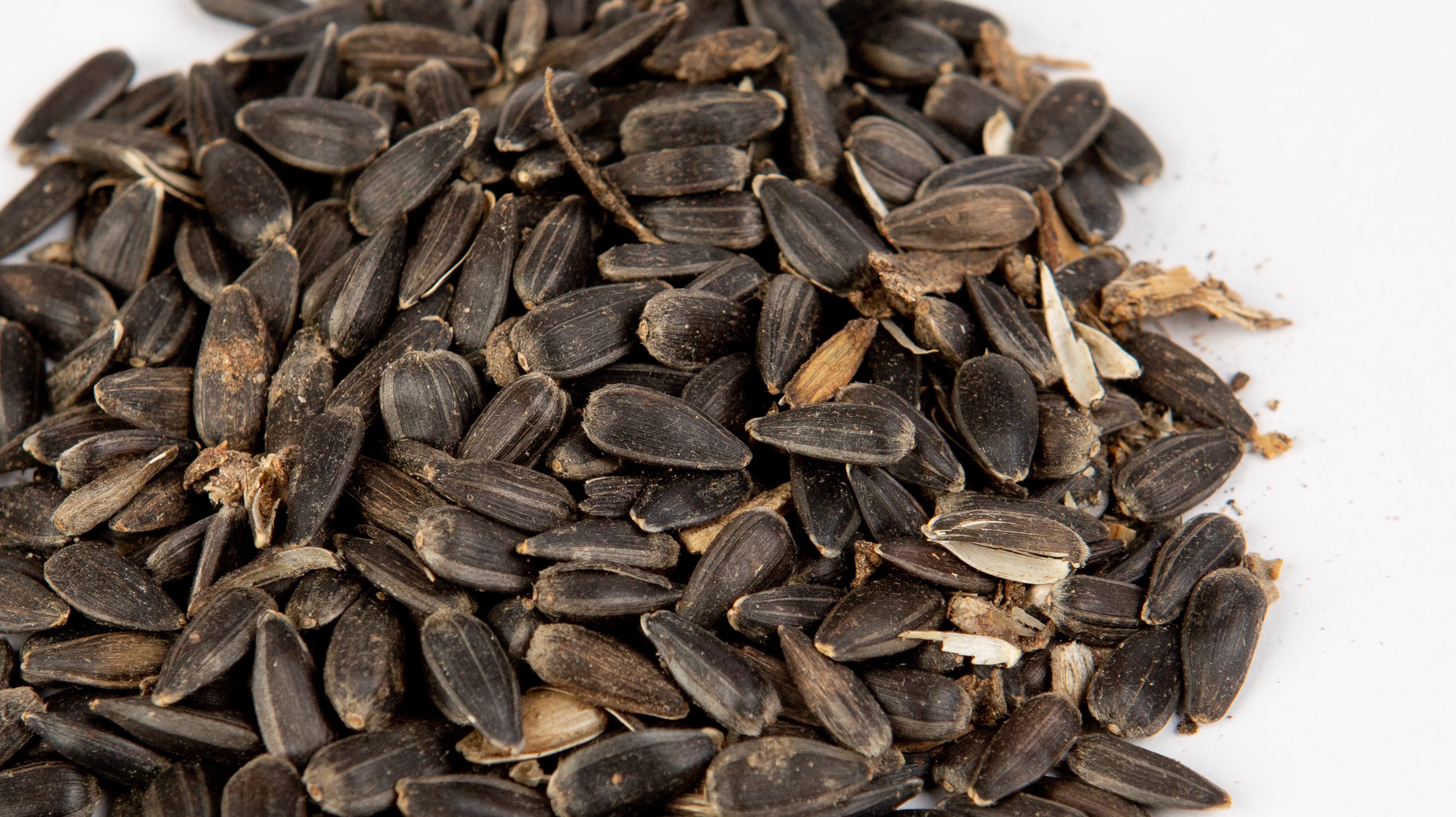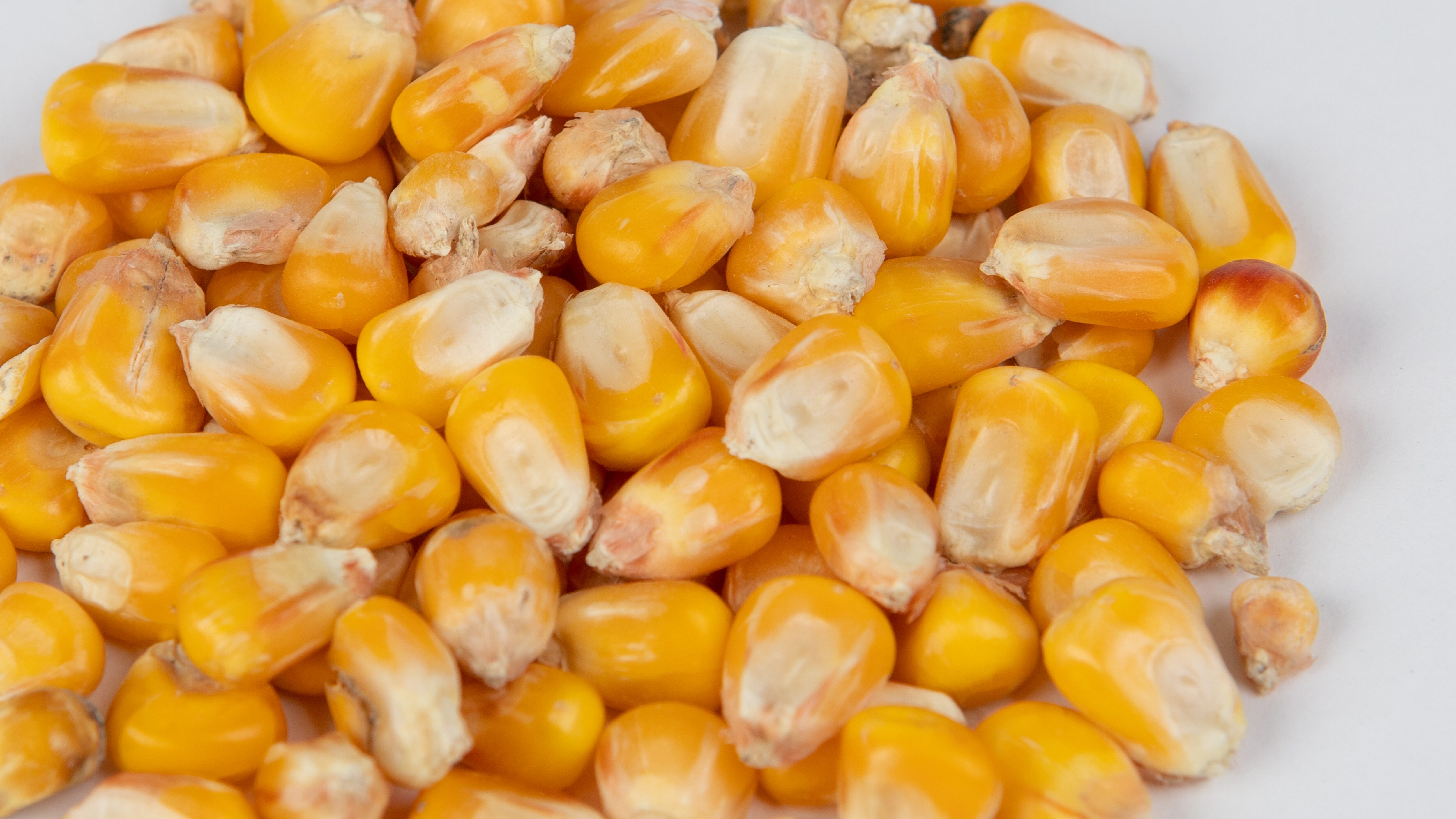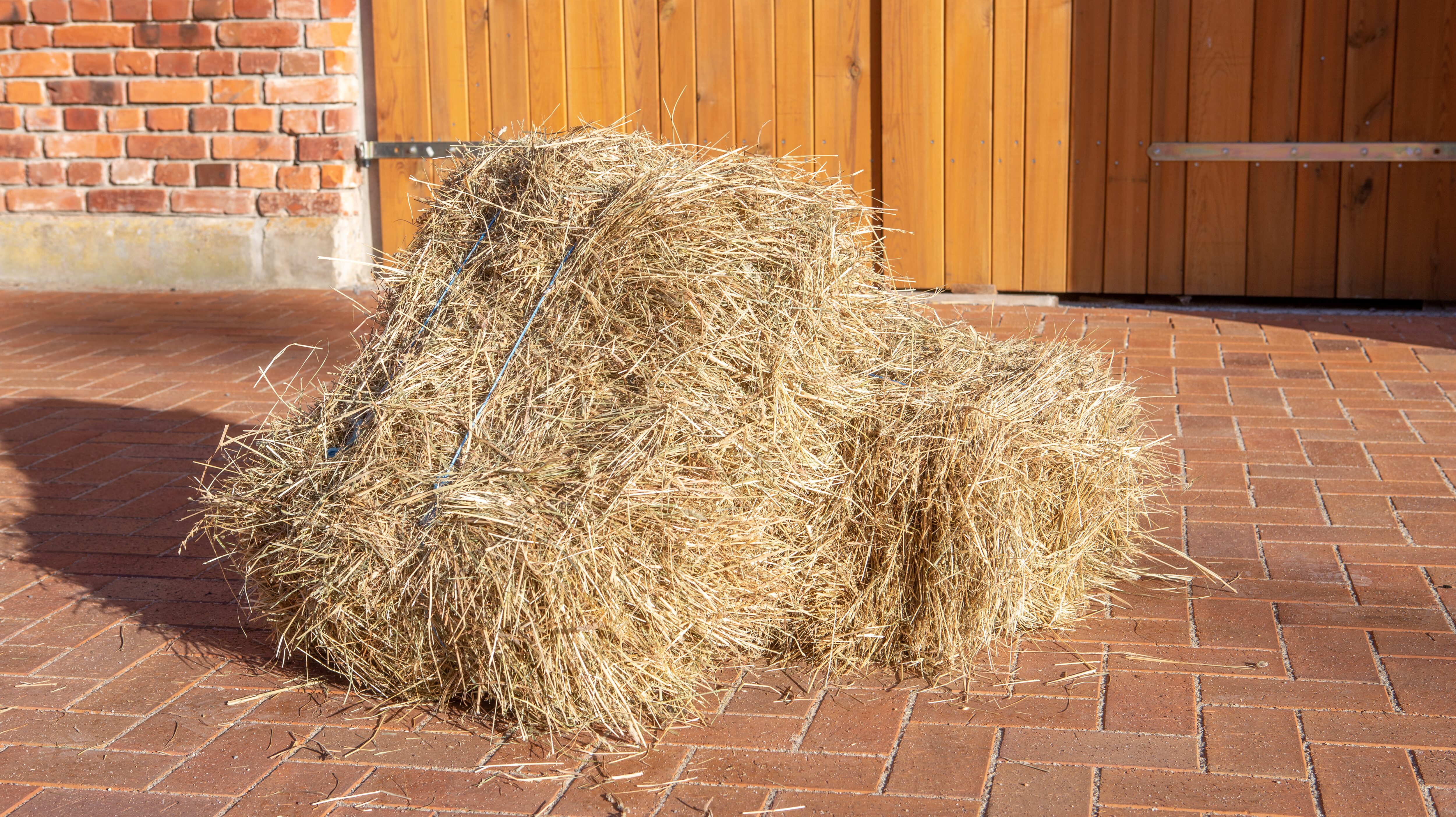 Kartoffeln, Weizen, Gerste, Mais, Erbsen, Sonnenblumenkerne, Heu und Stroh in kleinen Bunden